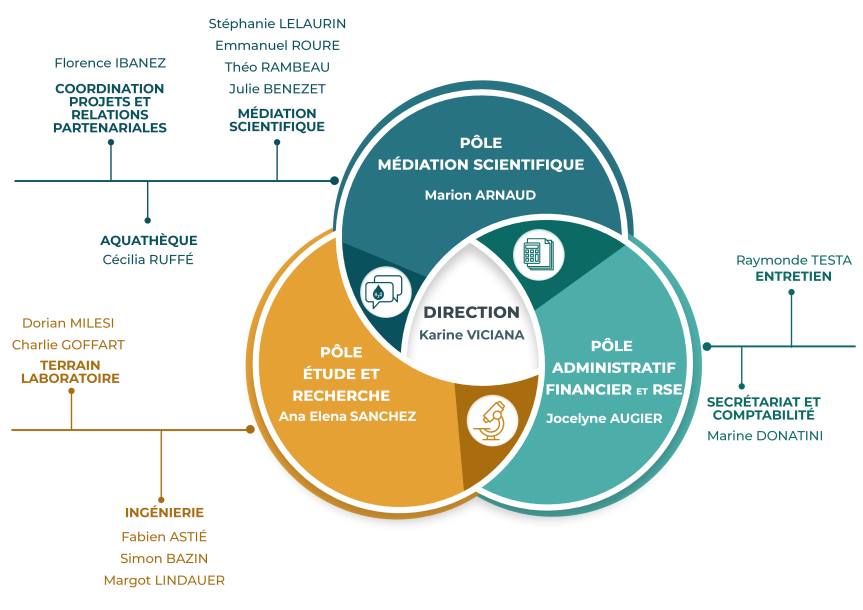 La Maison régionale de l’eau s’appuie sur une équipe aux profils complémentaires : médiateurs scientifiques, ingénieurs, techniciens d’études, chargés de missions et personnels administratifs. Ensemble, ils mettent leurs compétences et leurs expertises au service d’une même cause : l’eau et les milieux aquatiques.